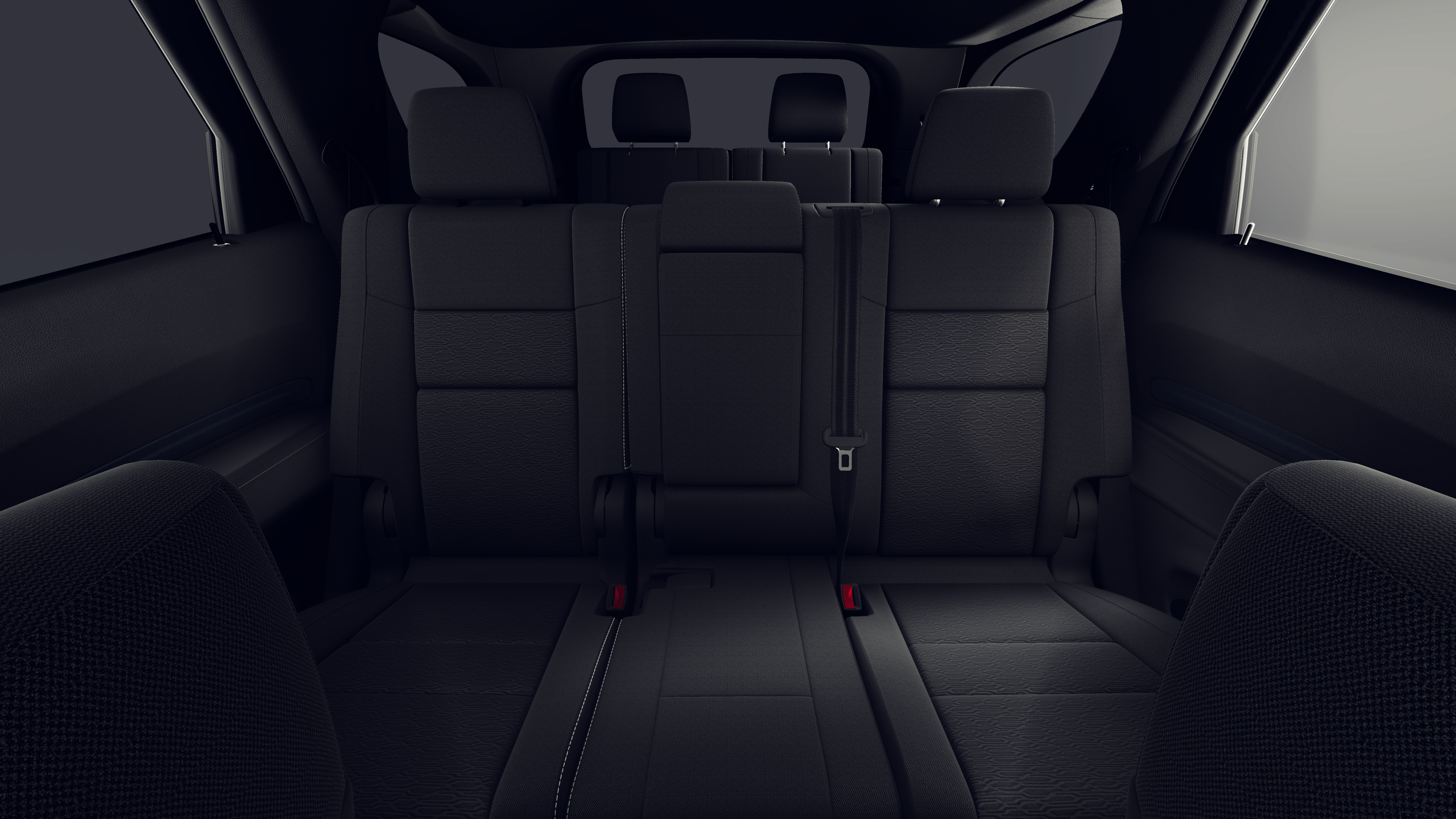 - Fixed 50-50 Split-Bench Cloth 3rd Row Seat Front, Manual Fold Into Floor, 2 Power and Adjustable Head Restraints