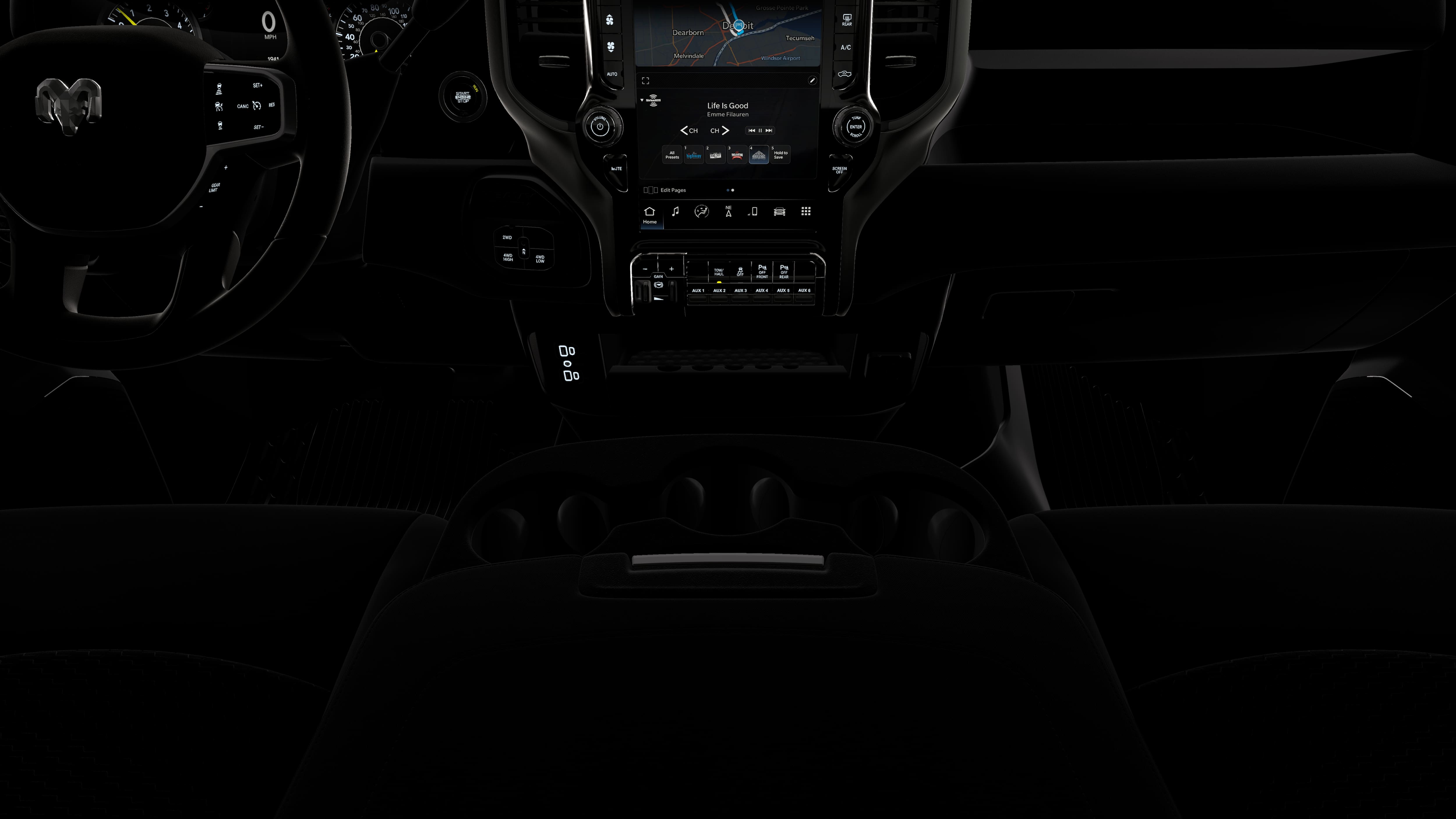 - Radio w/Seek-Scan, Clock, Speed Compensated Volume Control, Aux Audio Input Jack, Voice Activation, Radio Data System and Uconnect External Memory Control