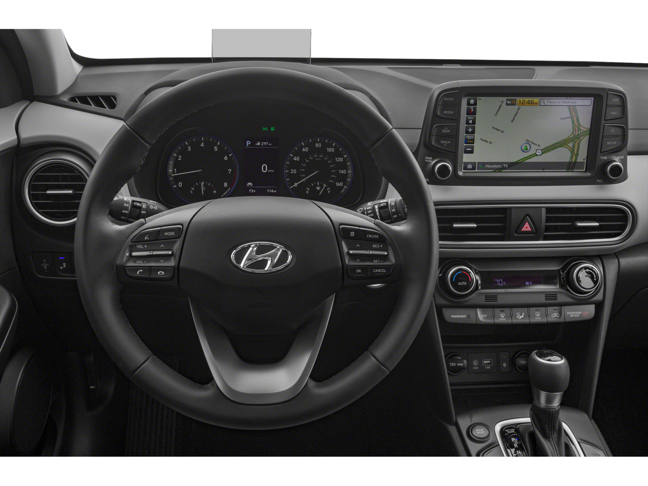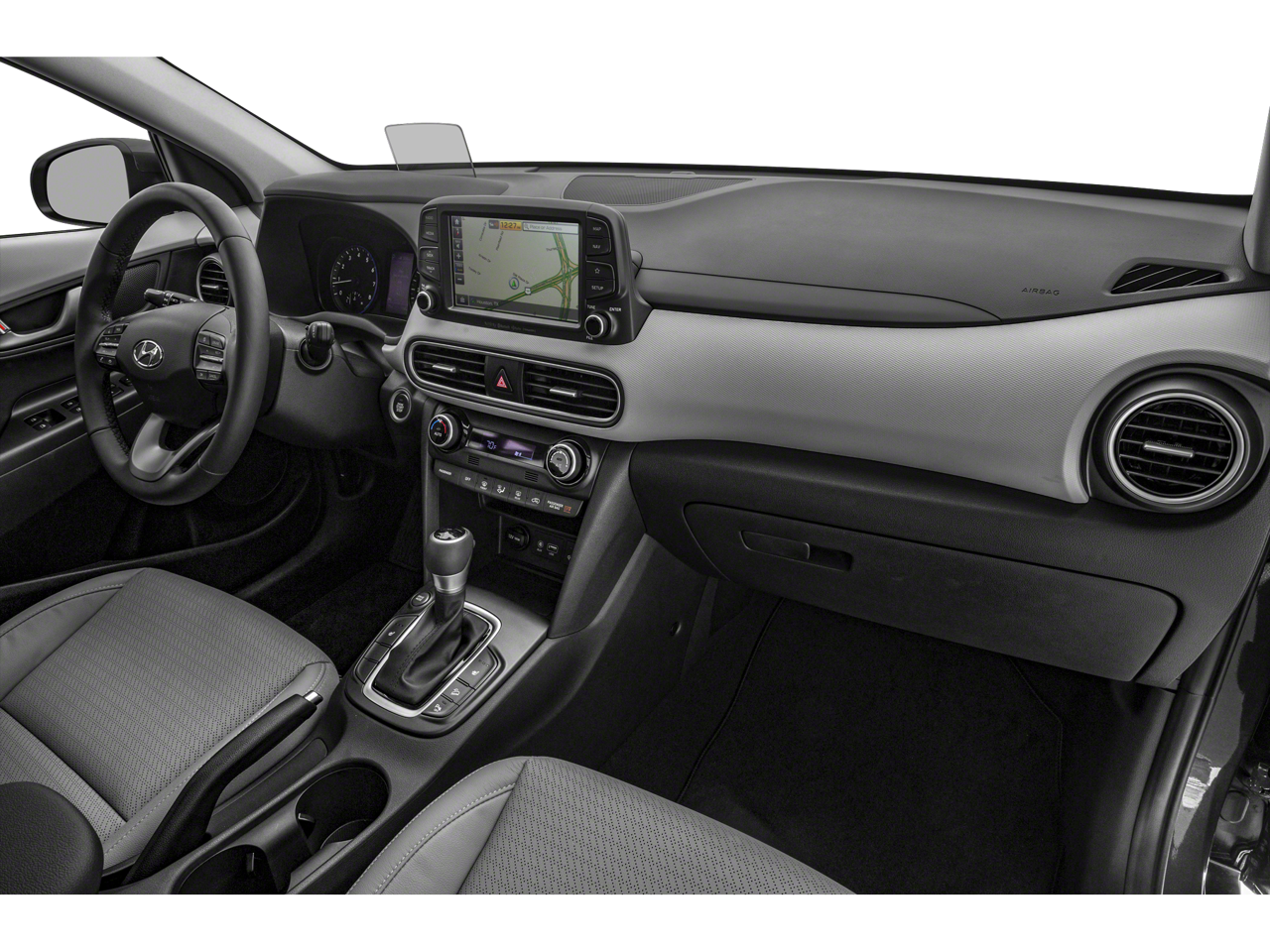 Step inside the Kona Ultimate, and you'll be greeted by a wealth of premium features and technology. The leather-wrapped steering wheel and shift knob provide a luxurious touch, while the Heads-Up Display and 8-speaker audio system keep you connected and entertained. The heated front seats and dual-zone automatic climate control ensure your comfort, no matter the weather.