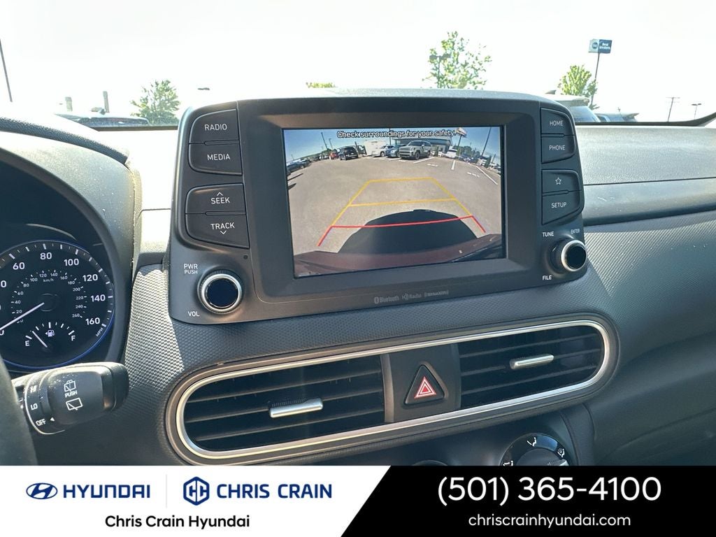 This Kona SEL also comes equipped with a range of impressive features, including SiriusXM radio, air conditioning, power windows, remote keyless entry, and more. Enjoy the convenience of the overhead console, tachometer, and heated front seats, all while staying connected with the advanced infotainment system.
