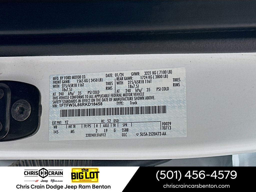 Safety is paramount, and this F-150 delivers with a comprehensive suite of features, including Dual Front Impact Airbags, Dual Front Side Impact Airbags, Overhead Airbag, and an Emergency Communication System with SYNC 4 911 Assist.