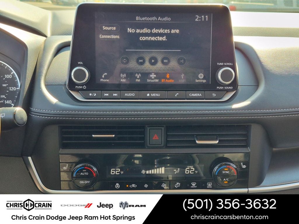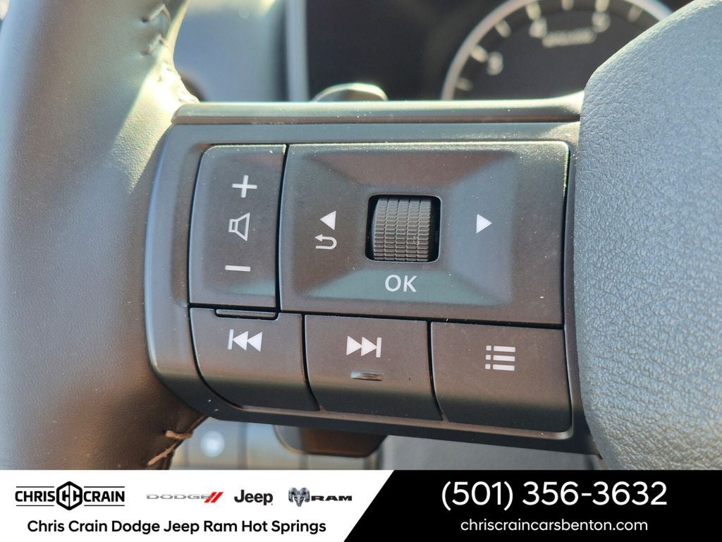 Elevate your driving experience with the Rogue SV's exceptional comfort and convenience features. Indulge in the warmth of the heated steering wheel and front seats, while the leatherette door trim inserts with stitch add a touch of refined elegance. The panoramic moonroof and rear door sunshades provide an open and airy cabin, perfect for enjoying the great outdoors. Stay connected and entertained with the AM/FM NissanConnect radio and 6-speaker sound system.